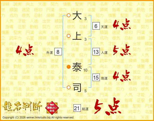 大上泰司さんの総運は21画の5点!