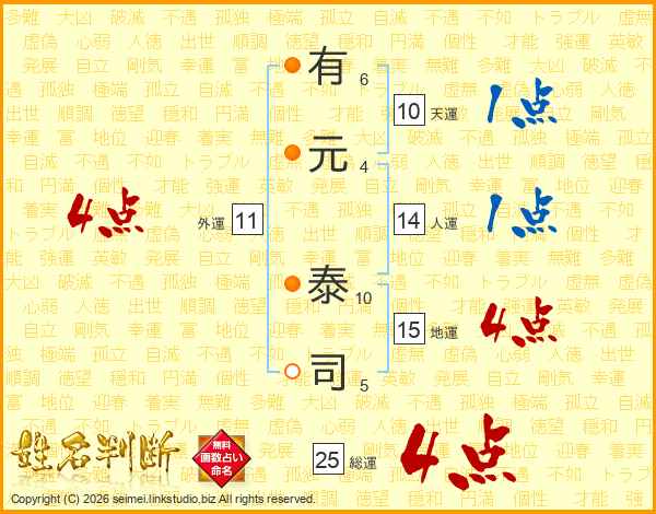 有元泰司さんの総運は25画の4点!