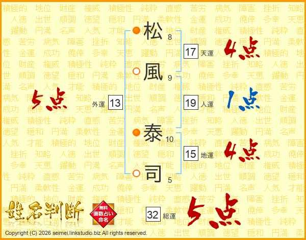 松(8画)風(9画) 泰(10画)司(5画)