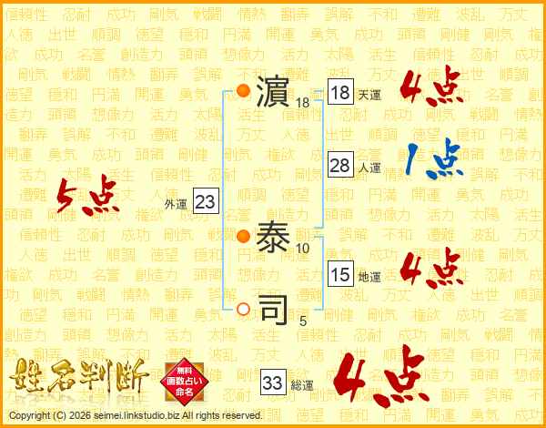 濵泰司さんの総運は33画の4点!