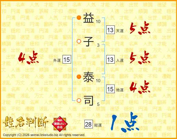 益(10画)子(3画) 泰(10画)司(5画)