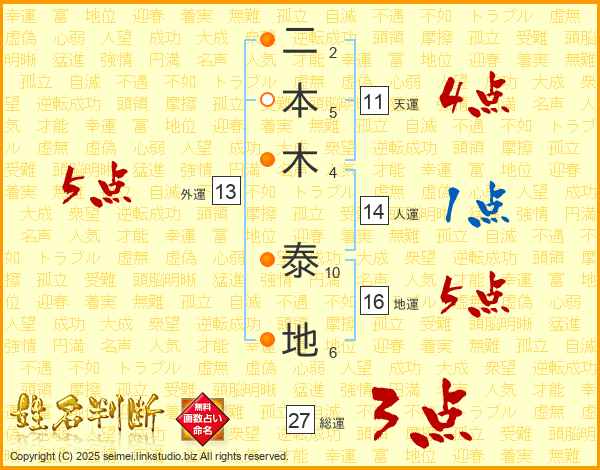 二本木泰地さんの天運は11画の4点!