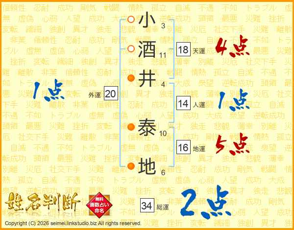 小(3画)酒(11画)井(4画) 泰(10画)地(6画)