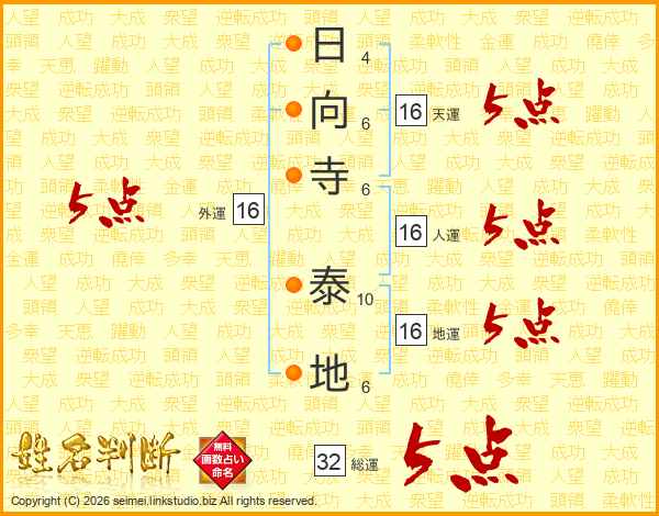 日向寺泰地さんの総運は32画の5点!