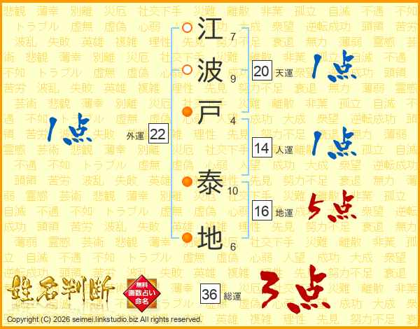 江波戸泰地さんの総運は36画の3点!