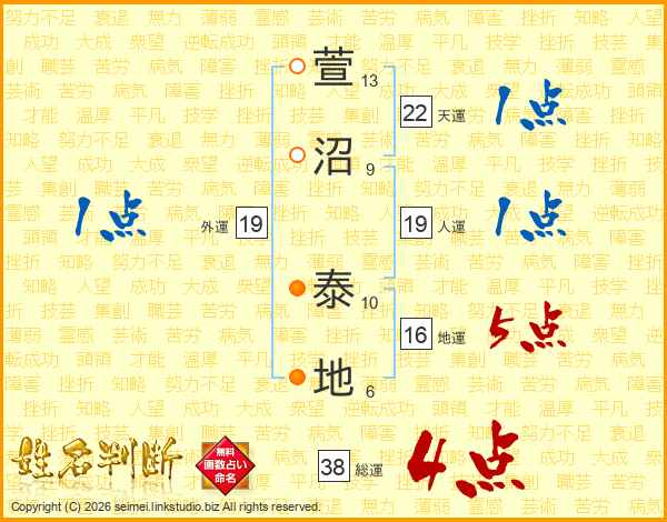 萱(13画)沼(9画) 泰(10画)地(6画)