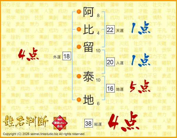 阿(8画)比(4画)留(10画) 泰(10画)地(6画)