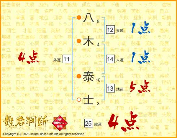 八木泰士さんの総運は25画の4点!