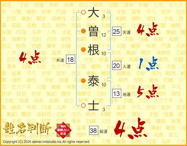 大曽根泰士さんの総運は38画の4点!