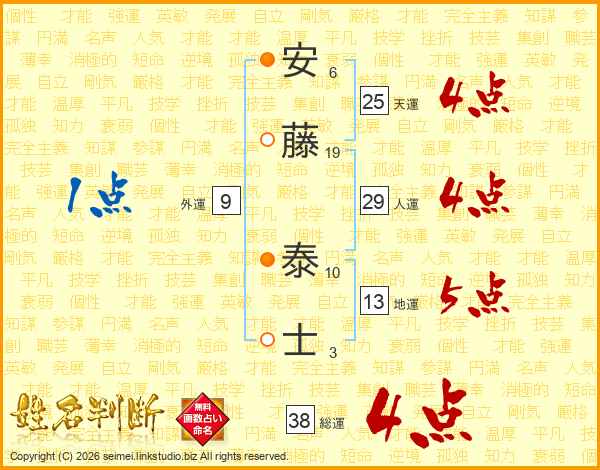 安藤泰士さんの総運は38画の4点!