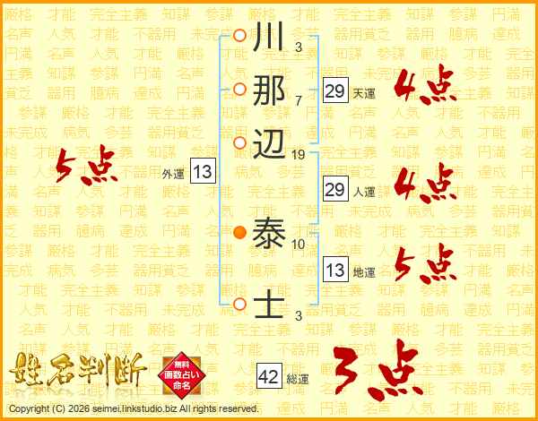 川那辺泰士さんの外運は13画の5点!