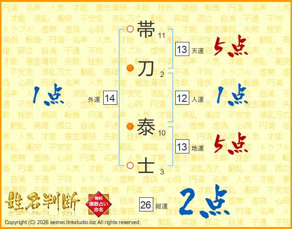 帯(11画)刀(2画) 泰(10画)士(3画)