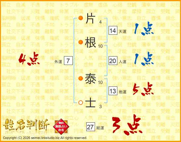 片根泰士さんの外運は7画の4点!