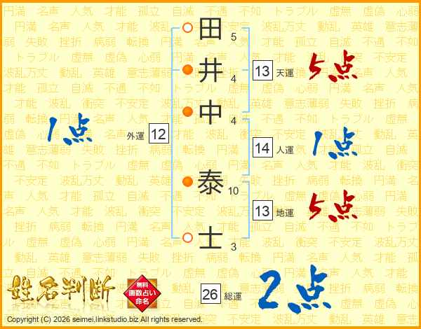 田(5画)井(4画)中(4画) 泰(10画)士(3画)