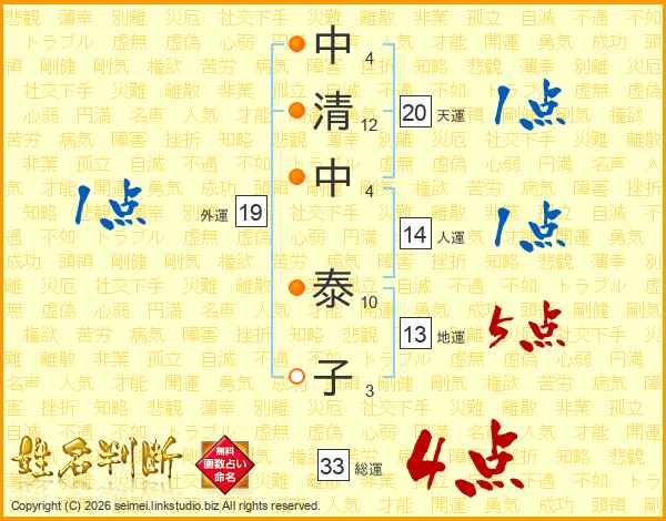 中清中泰子さんの総運は33画の4点!