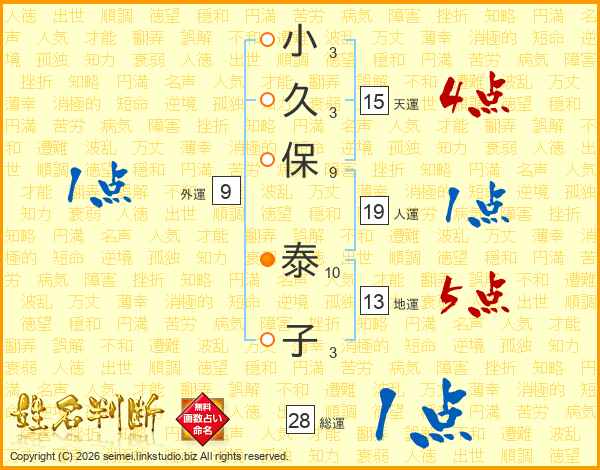 小久保泰子さんの総運は28画の1点!
