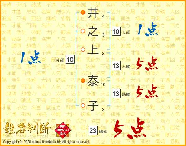 井之上泰子さんの総運は23画の5点!