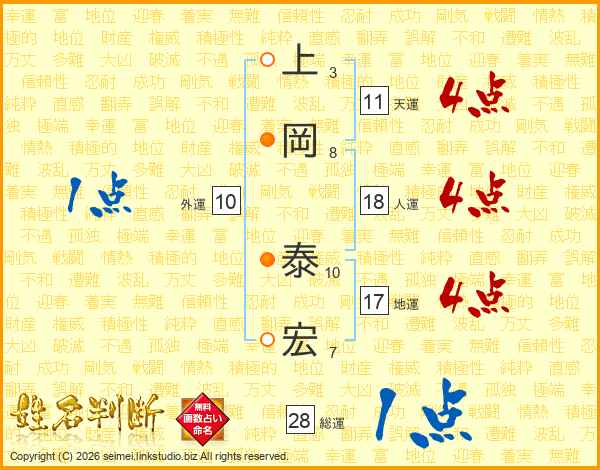 上岡泰宏さんの天運は11画の4点!