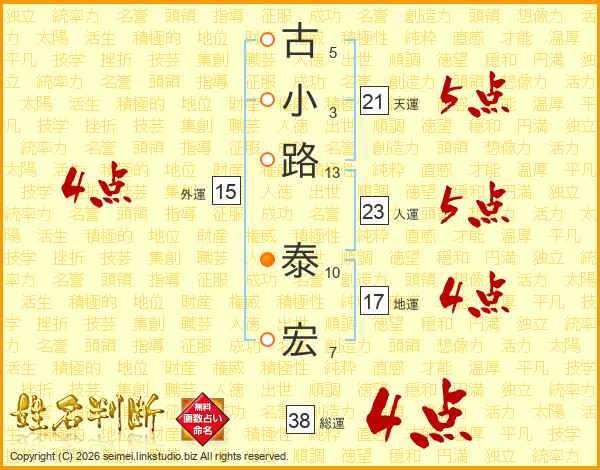 古小路泰宏さんの総運は38画の4点!