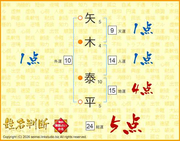 矢木泰平さんの総運は24画の5点!