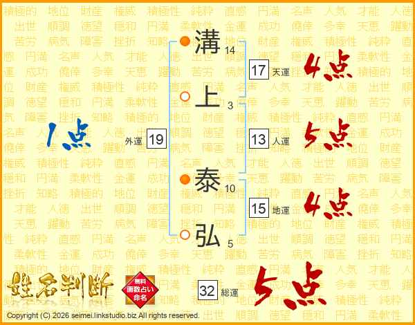 溝上泰弘さんの総運は32画の5点!