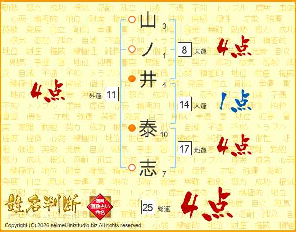 山ノ井泰志さんの総運は25画の4点!