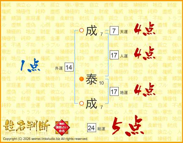 成泰成さんの総運は24画の5点!