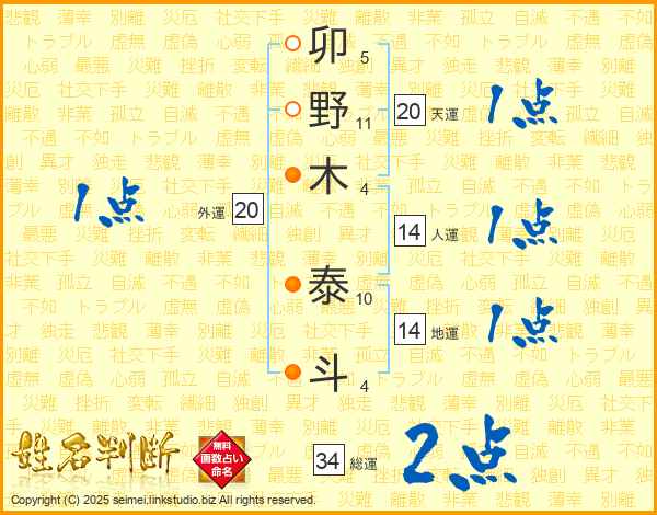 卯野木泰斗さんの総運は34画の2点!