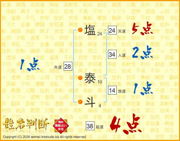 塩(24画) 泰(10画)斗(4画)