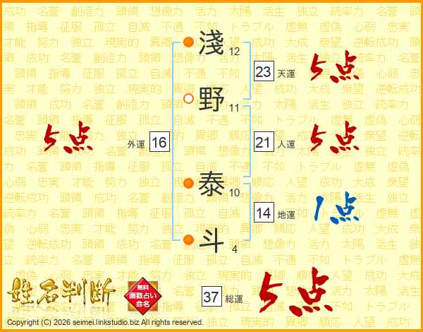 淺野泰斗さんの総運は37画の5点!