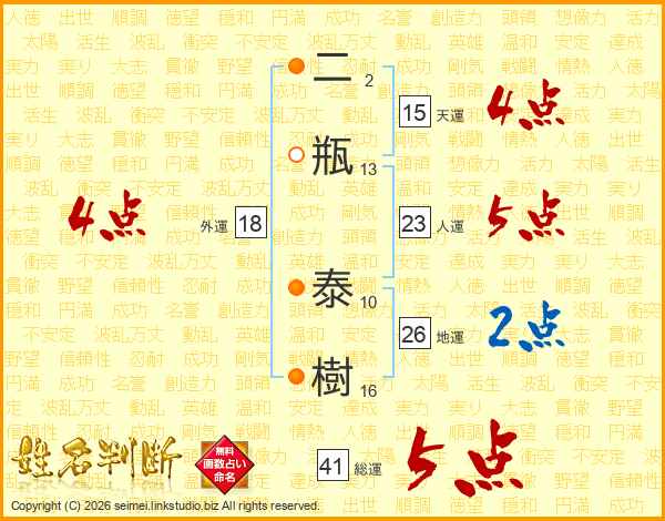 二瓶泰樹さんの地運は26画の2点!