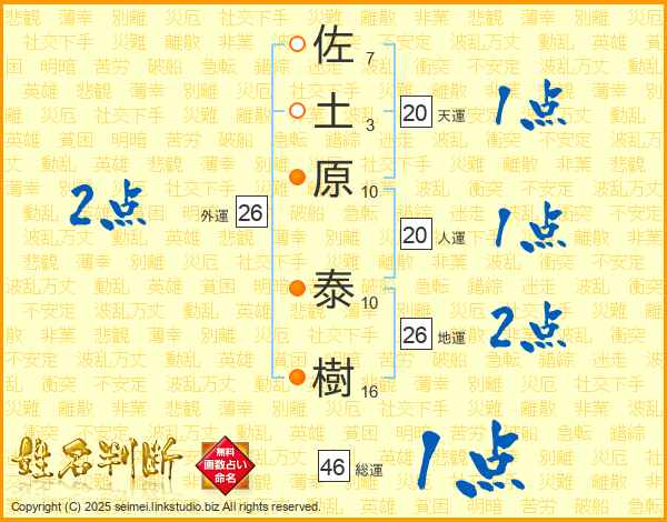 佐(7画)土(3画)原(10画) 泰(10画)樹(16画)