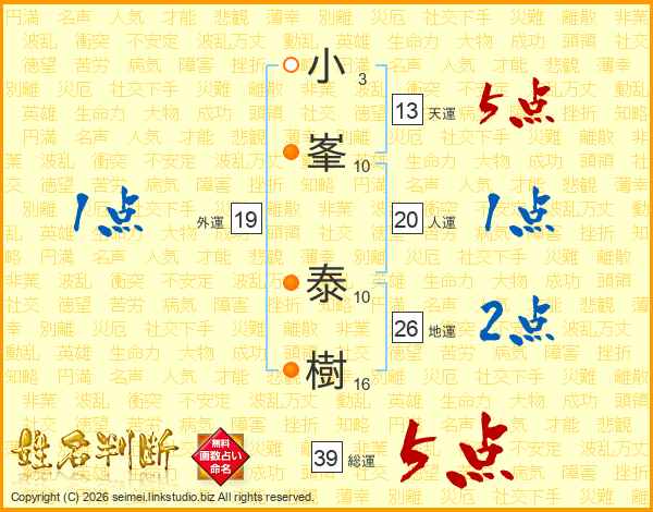 小峯泰樹さんの総運は39画の5点!