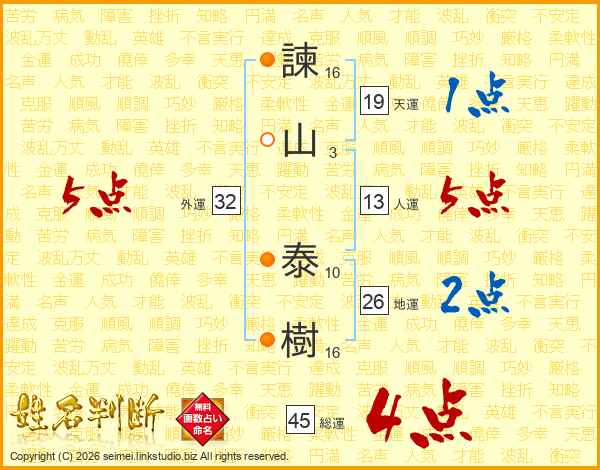 諫山泰樹さんの総運は45画の4点!