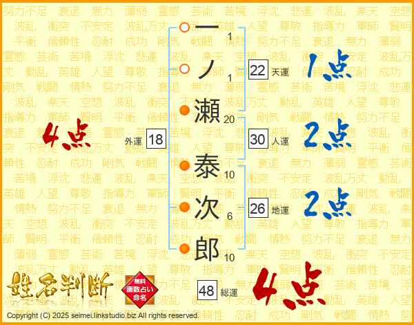 一ノ瀬泰次郎さんの総運は48画の4点!