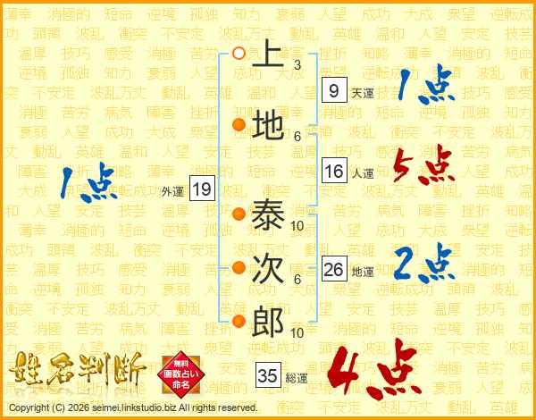 上地泰次郎さんの総運は35画の4点!