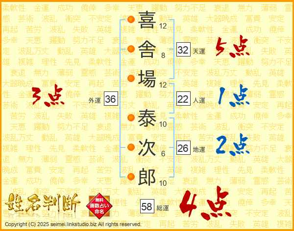 喜舎場泰次郎さんの総運は58画の4点!