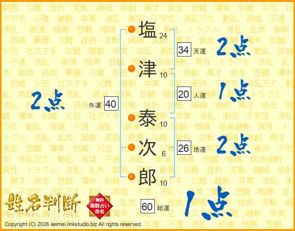 塩(24画)津(10画) 泰(10画)次(6画)郎(10画)