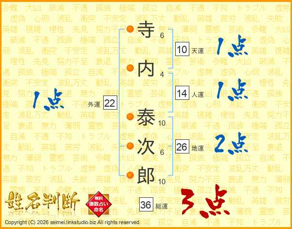 寺内泰次郎さんの地運は26画の2点!