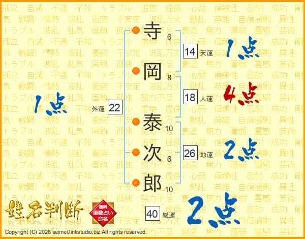 寺岡泰次郎さんの地運は26画の2点!