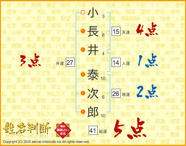 小(3画)長(8画)井(4画) 泰(10画)次(6画)郎(10画)