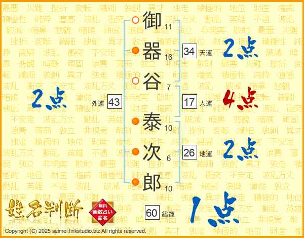御器谷泰次郎さんの天運は34画の2点!