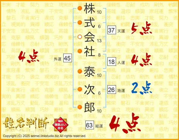 株式会社泰次郎さんの総運は63画の4点!