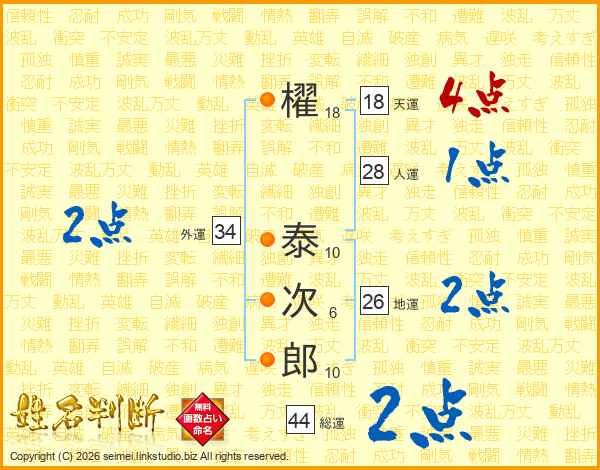 櫂泰次郎さんの天運は18画の4点!