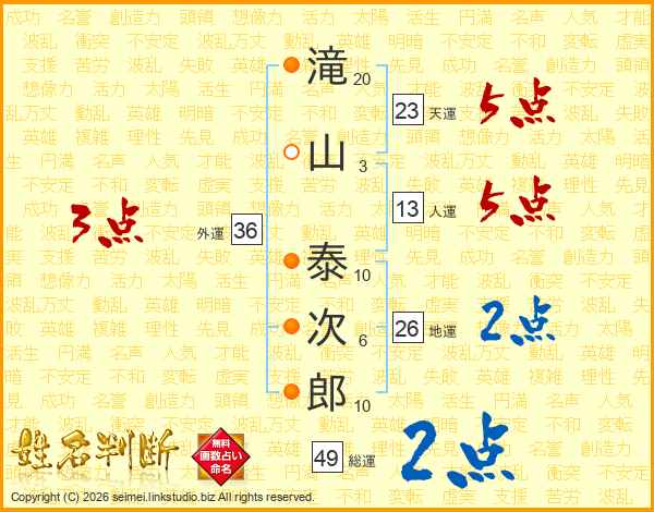 滝山泰次郎さんの天運は23画の5点!