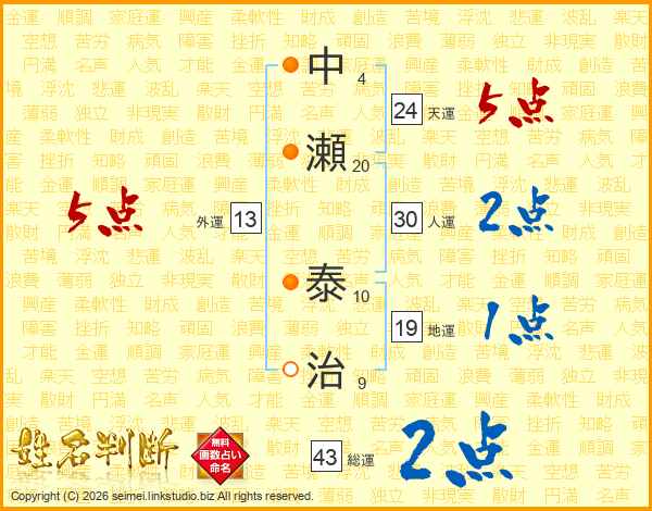 中瀬泰治さんの天運は24画の5点!