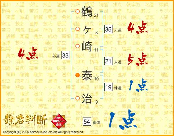 鶴ヶ崎泰治さんの外運は33画の4点!