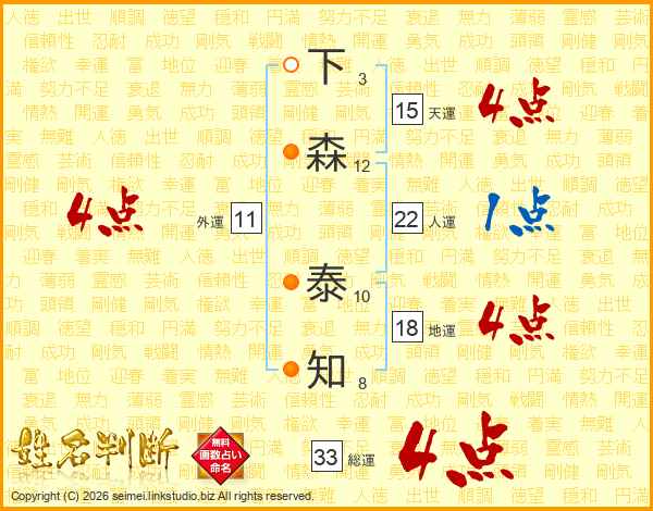 下森泰知さんの総運は33画の4点!
