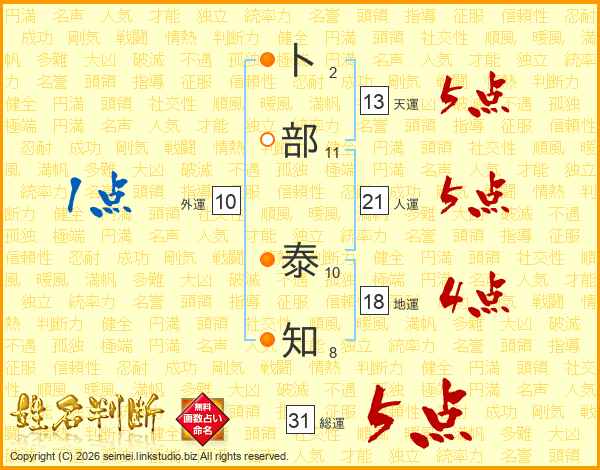 卜部泰知さんの総運は31画の5点!