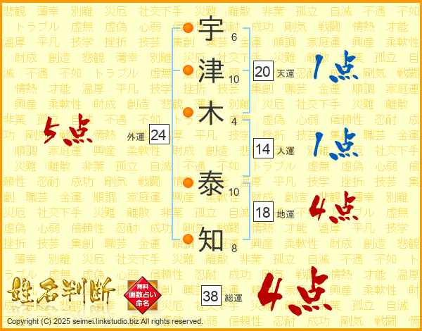 宇津木泰知さんの総運は38画の4点!